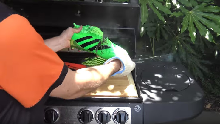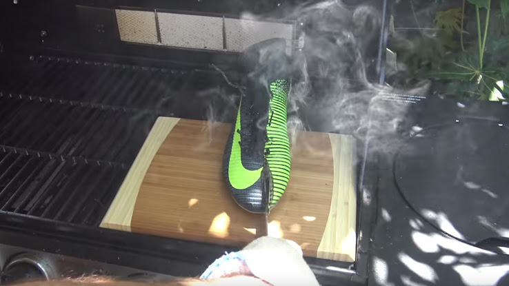 Im Video sehen wir den Football-Boots-Typen beim Erhitzen eines Messers und Durchschneiden vieler Fußballschuhe, einschließlich eines Adidas Ace 16 PureControl, X 16 PureChaos und dem jüngsten eigenen Cristiano-Ronaldo-Modell, dem Nike Mercurial Superfly V Chapter 3.