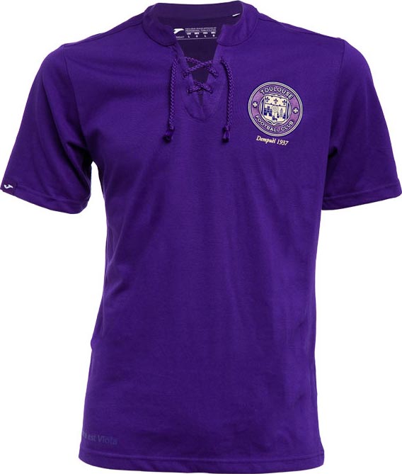 Das neue Toulouse-Jubiläumstrikot, das einen sehr klassischen Look hat, ist im traditionellen Lila des Klubs gehalten und wird aus einem dickeren, altmodischeren Baumwollmaterial hergestellt. Der Kragen des Trikots, zu dem eine Schnur gehört, um die Passform anzupassen, ist ebenfalls ein Hinweis auf Fußballtrikots, die in der ersten Hälfte des 20. Jahrhunderts getragen wurden.