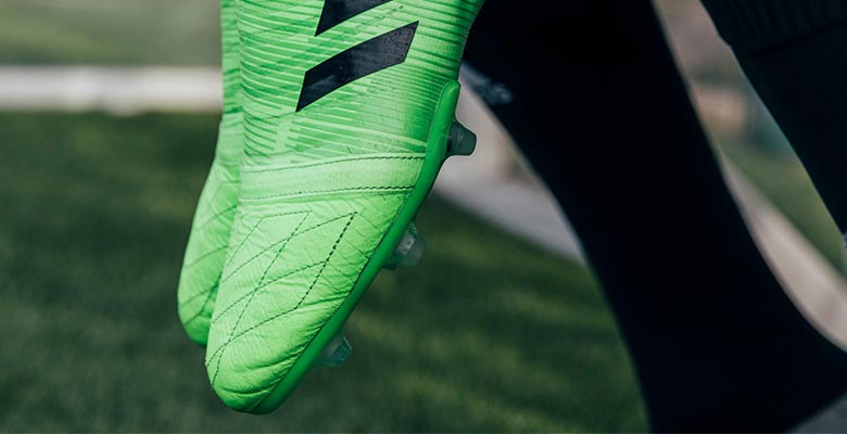 Die schwarz-grünen Adidas Glitch 17 Fußballschuhe, die Teil der Optiflage-Kollektion sind, sind bereits für einen Preis von 110€ zu kaufen. Der Schuh muss mit einem passenden Innenschuh kombiniert werden, um als normaler Fußballschuh zu fungieren - wie immer.