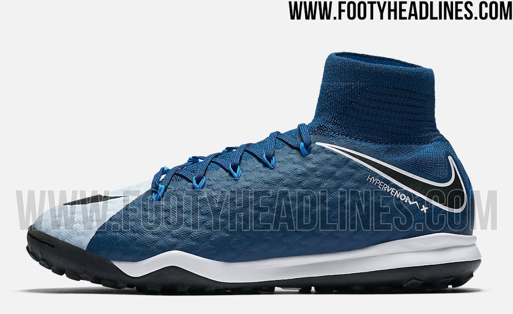 Die blauen Nike Hypervenom X Proximo Fußballschuhe werden ab April 2017 für 175 Euro sowohl als IC (Hallen und Straßen) als auch TF (Hartplatz) Version erhältlich sein.