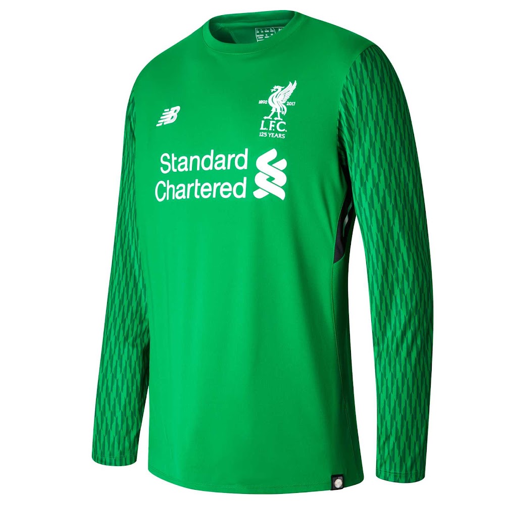 Das Liverpool 17-18 Torwart-Trikot, das zum neuen Heimtrikot passt, feiert das 125-jährige Jubiläum des Klubs mit einem klassischen Design in Grün und Weiß.