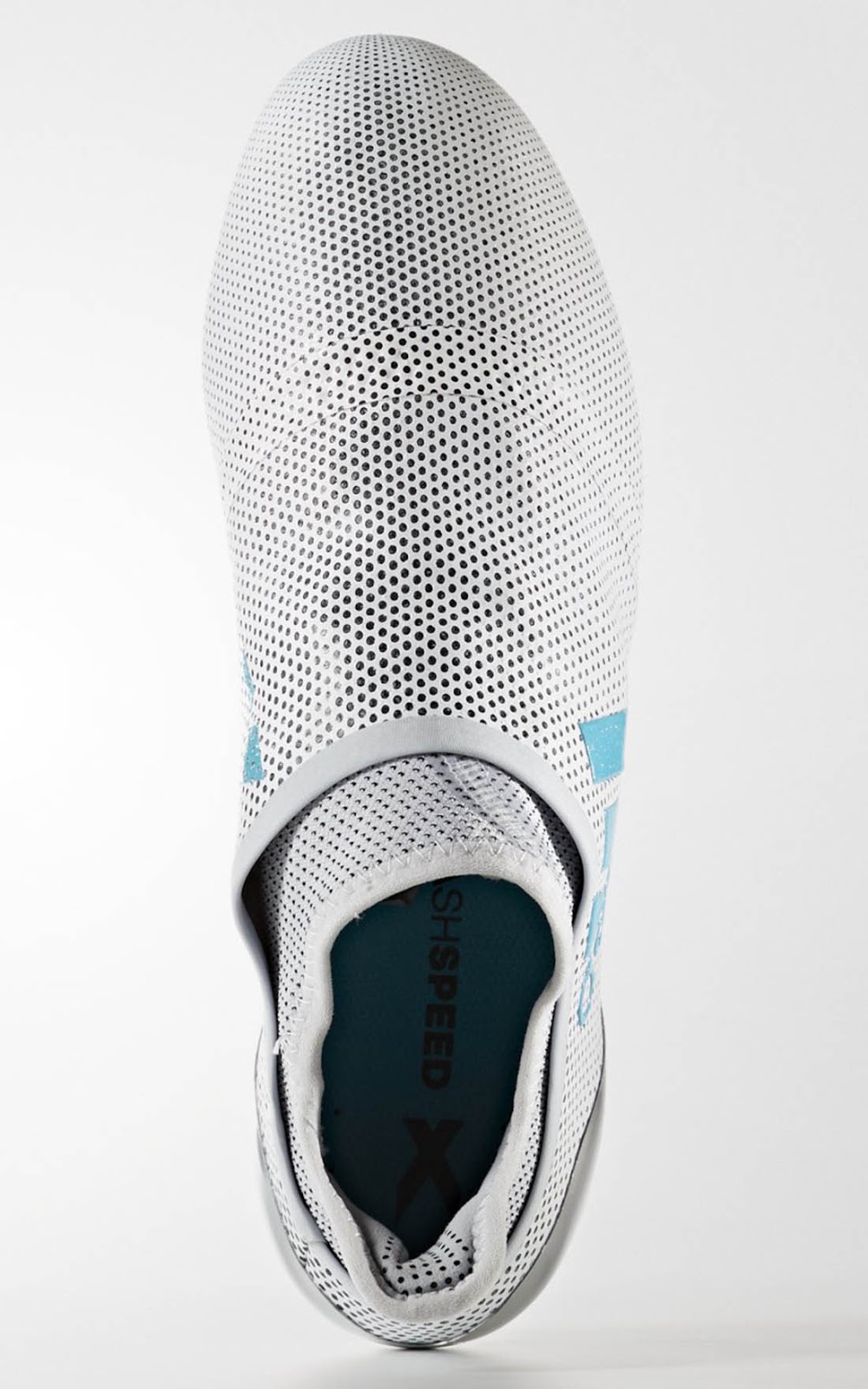 Der allererste Adidas X 17+ Purespeed Fußballschuh führt ein modernes Design in Weiß, Hellgrau und Hellblau ein. Die weißen Adidas X 17+ Purespeed Debütschuhe sind Teil der Adidas Dust Storm Kollektion, die Anfang Juni 2017 vorgestellt wurde.