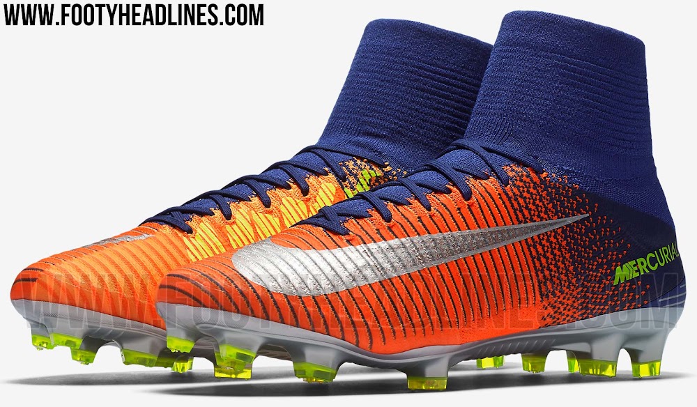 Die Nike Time to Shine Pack 2017 Mercurial Superfly Fußballschuhe führen ein modernes Design in Dunkelblau, Orange und Silber ein, um auf dem Platz herauszuragen.