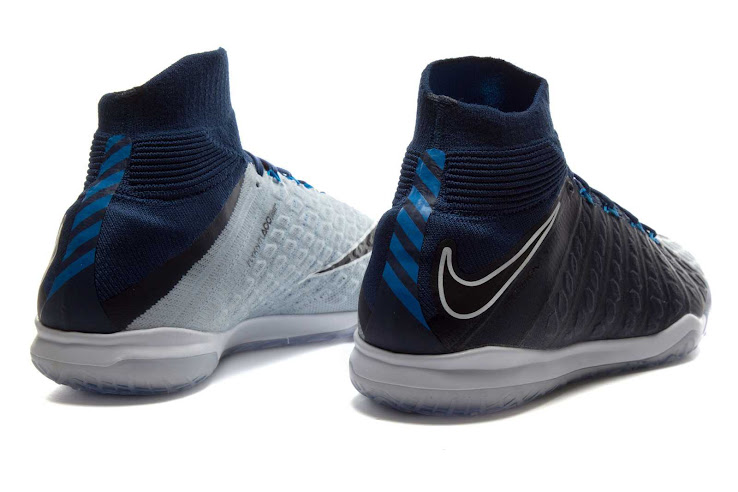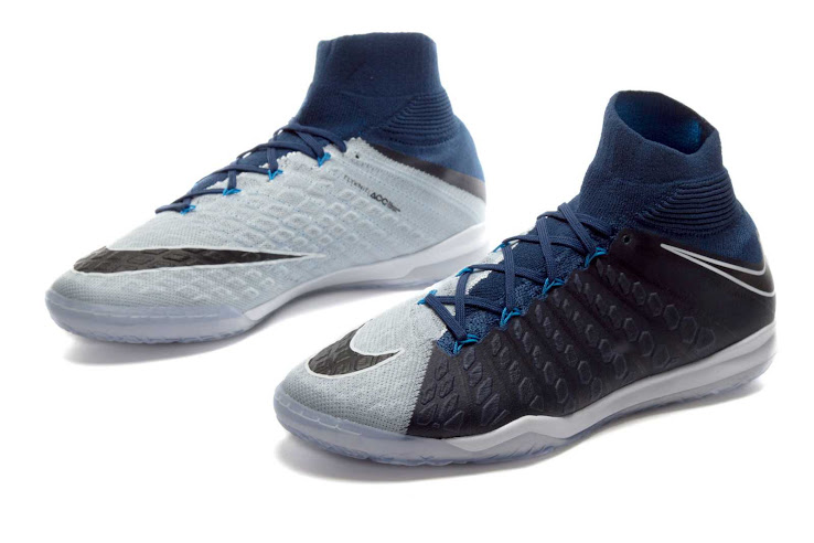 Während die Outdoor-Version des Hypervenom in einem hellen Blau und Weiß erstrahlt, ist die FootballX-Edition deutlich zurückhaltender und kombiniert Dunkelblau mit Hellgrau, als auch Schwarz und Weiß.