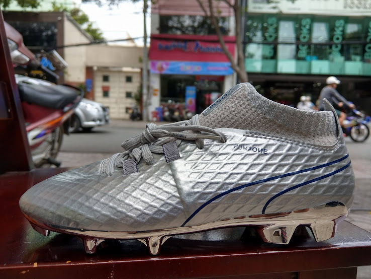 Der neue Chrome Puma ONE bietet ein gänzlich neues Konzept, indem ein synthetisches Mikrofaserobermaterial beim Schuh hinzugefügt wird, das standardmäßig eine Lederlösung aufweist. Die Puma ONE Chrome Schuhe, die eine Special-Edition sind, werden für einen höheren Preis als normale Farbvarianten verkauft.