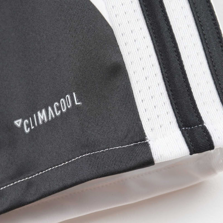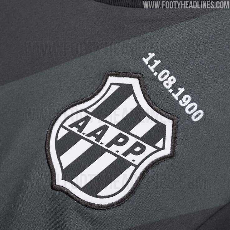 Das neue Ponte-Preta-Auswärtstrikot, das auf dem gleichen Template basiert, bietet eine geheimnisvolle Interpretation des Designs. Das Trikot, das hauptsächlich schwarz ist, weist eine tonale Schärpe und ähnlich unscheinbare Adidas-Streifen entlang der Seiten auf.