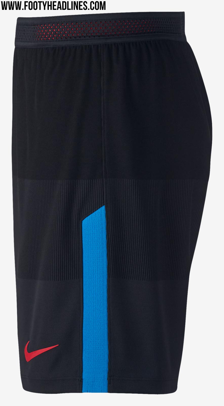 Nike wird in der Saison 2017-18 die faszinierende Kombination aus Schwarz, Blau und Rot für Barcelonas Trainingskleidung einführen, worunter ein hochwertiges Vapor-Aeroswift-Trikot mit Hose zählt, das von Topspielern wie Messi und Neymar getragen wird, um die neue Spielzeit einzuläuten.