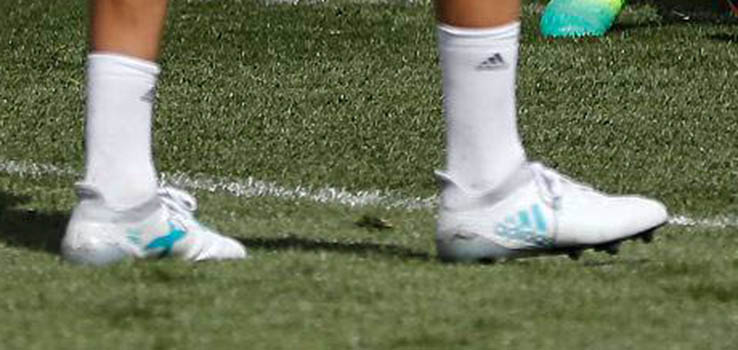 Die Launchfarbvariante der Adidas X 17 Fußballschuhe, die die Hauptfarbe Weiß mit blauen und hellgrauen Applikationen kombiniert, wurde entworfen, um modern zu sein. Interessanterweise sind die Farben Real Madrids unveröffentlichtem 2017-18 Heimtrikot ähnlich, womit eine atemberaubende Kombination aus Trikot und Schuhen erschaffen wird.
