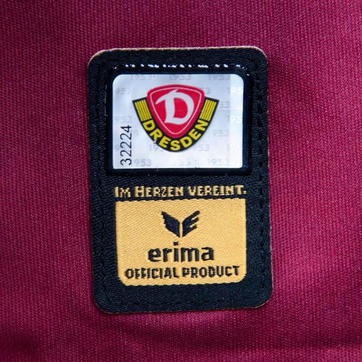 Das neue Erima Dynamo Dresden 2017-18 Trikot ist schwarz und weinrot. Das Trikot setzt auf einen Farbübergang auf der gesamten Vorderseite. Die Erima-Logos und das Sponsorenlogo auf der Vorderseite sind weiß.