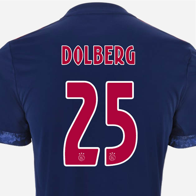 Hier ist die neue Ajax-Schriftart auf dem 2017-18 Auswärtstrikot.