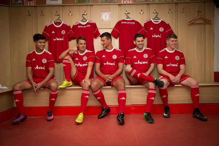 Rote Hosen und Stutzen komplettieren das neue Accrington-Stanley-Trikot.