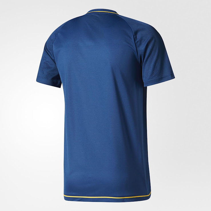 Das neue Juventus-Trainingstrikot ist dunkelblau und weiß mit goldenen Details, um ein elegantes Design zu erschaffen. Das Trikot basiert auf dem gleichen Template wie andere Adidas 17-18 Trainingstrikot wie das von ManU.