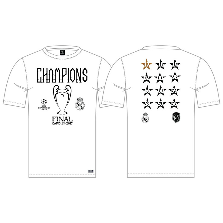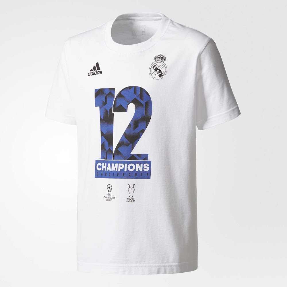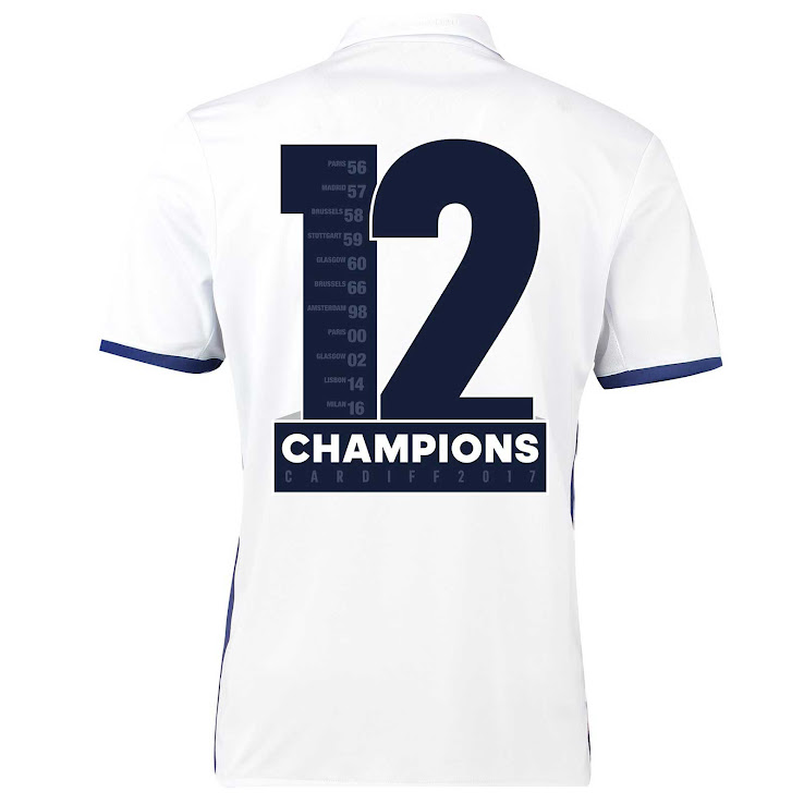 Das T-Shirt, das von Adidas hergestellt wird, ist weiß mit schwarzen Adidas-, Real-Madrid-, Cardiff-Finale- und Wettbewerbslogos. Das Herzstück ist jedoch eine große "12", um die Titel hervorzuheben, die vom spanischen Klub gewonnen wurden.