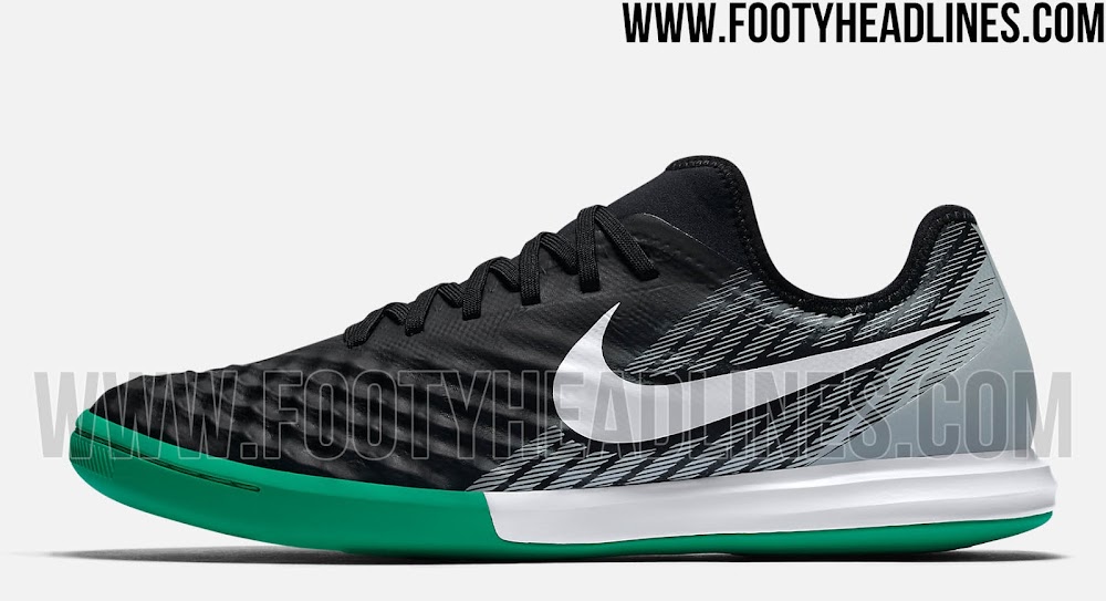 Das Nike 2017-2018 Black Pack liefert auch der Kleinfeldversion des Magista einen unauffälligen Look. Der schwarze Nike MagistaX Finale 2 Schuh, der offiziell die Nike MagistaX Finale Stealth Pitch Dark Pack Edition ist, wurde Ende Juni 2017 veröffentlicht.