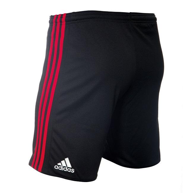 Die Hosen und Stutzen sind schwarz mit roten und weißen Akzenten.