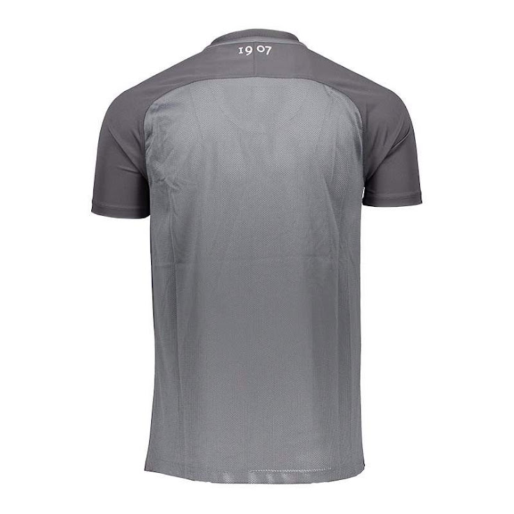 Das Augsburg 2017-2018 Trikot basiert auf dem Trophy III Teamwear-Template in Grün und Weiß. Die Ärmel sind etwas dunkler als der Rest des Trikots und wieder einmal taucht "1907" auf der oberen Rückseite auf.
