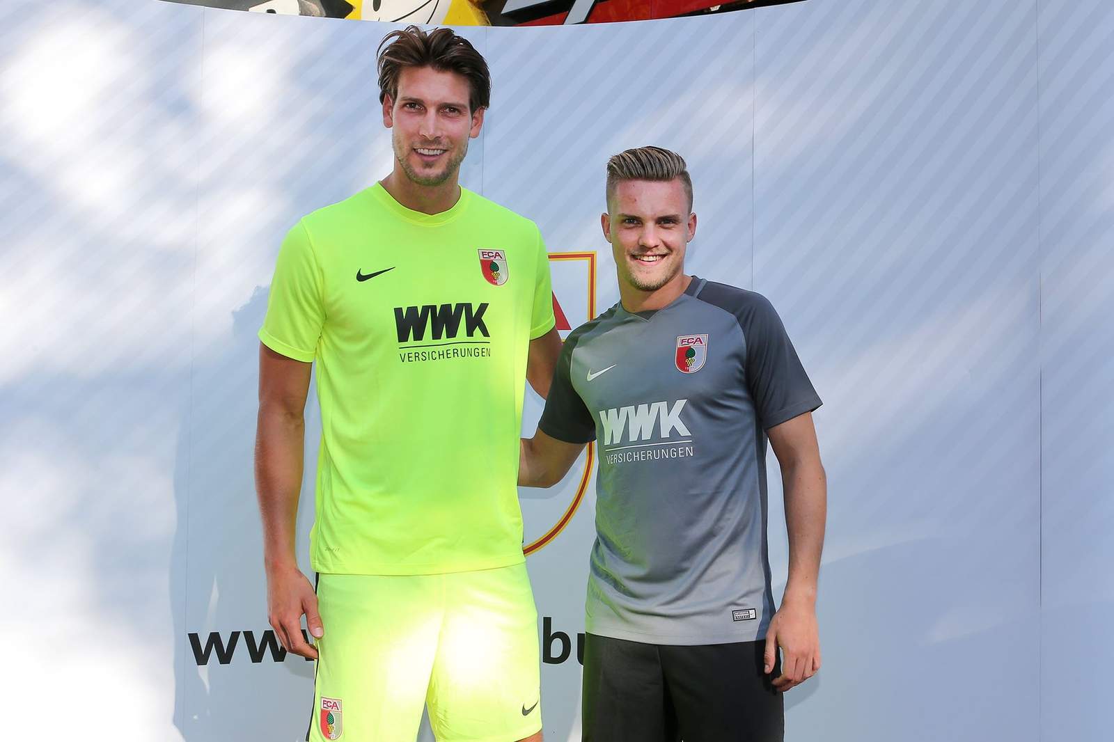 Der Bundesligist FC Augsburg hat diesen Montagabend seine neuen Trikots für die kommende Spielzeit enthüllt. Die neuen Trikots, die wieder einmal von Nike produziert werden, wurden von den Spielern Marcel Heller, Fabian Giefer, Rani Khedira, Caiuby, Daniel Baier und Philipp Max aus der ersten Mannschaft enthüllt.