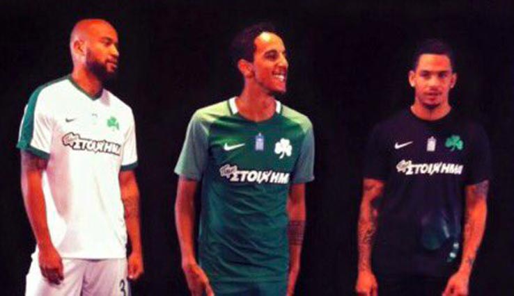 Dieses Bild zeigt die drei Panathinaikos 2017-2018 Trikots (via @VA51L1S).