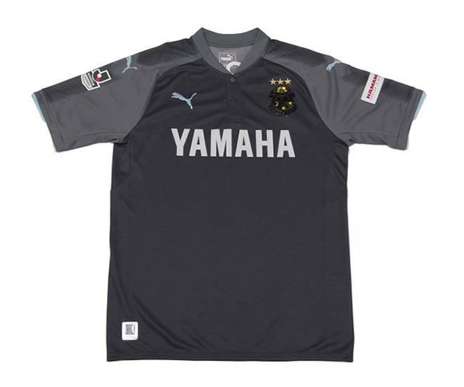 Das neue Jubilo-Iwata-Trikot ist schwarz mit grauen Ärmeln und einem grauen Kragen. Himmelblau wird für die Puma-Logos auf der Brust und den Ärmeln verwendet, als auch als Detail an den Ärmelenden. Zu guter Letzt wird das Vereinswappen in einer schwarz-gelben metallischen Version verwendet.
