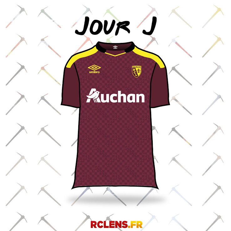 Das neue RC Lens 17-18 Trikot, das eine sehr gewagte Farbgebung hat, nachdem das letztjährige Auswärtstrikot schwarz und golden gewesen war, ist weinrot mit auffälligen gelben Applikationen und Logos. DIe Vorderseite des neuen Racing Club de Lens 2017-18 Trikots weist eine subtile Jacquardgrafik auf, die Pickel von Minenarbeitern zeigt, um der Minenregion Ehre zu erweisen.