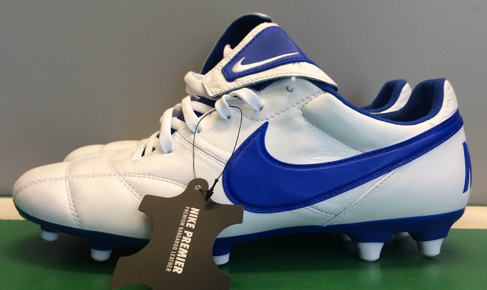 Logischerweise sind die neuen weiß / blauen Nike Premier Fußballschuhe identisch mit der klassischen schwarz-weißen Launchedition. Sie weisen ein überaus weiches Obermaterial aus Känguruleder und eine überstehende Zunge für den Fußballer ohne Faible für Schnickschnack oder technische Neuheiten auf.