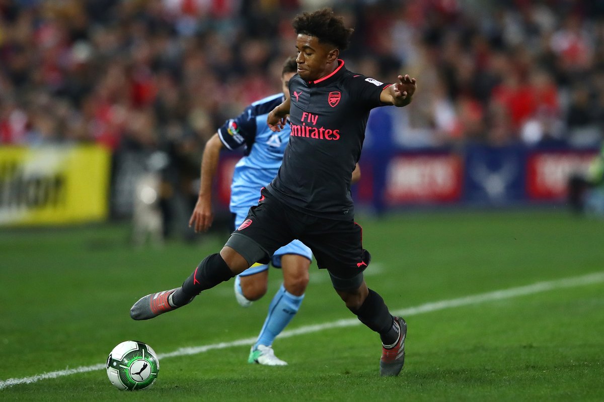 Arsenals Reiss Nelson hat den neuen synthetischen Adidas Glitch 17 Pyro Skin bereits debütiert.