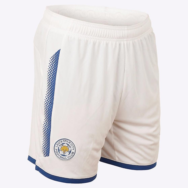 Weitere blaue Details sind am vorderen Ende des Kragens des neuen Leicester-Ausweichtrikots vorhanden, als auch in Form der Ausrüster- und Sponsorenlogos auf der Vorderseite. Die Schriftart auf der Rückseite ist dunkelblau.