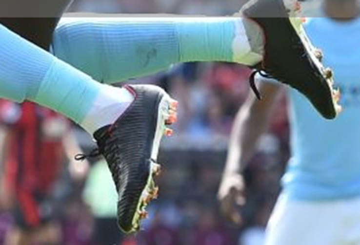 Nahaufnahme der Schuhe, die vom neuen Manchester-City-Transfer getragen wurden.