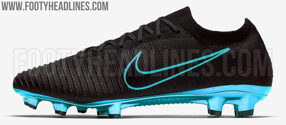 Die Nike Flyknit Ultra 2017 Fußballschuhe, die eine Vorschau dessen sind, was nächstes Jahr mit dem durchgehenden Flyknit Nike Mercurial Vapor XII erscheinen wird, haben ein einteiliges Flyknit-Obermaterial mit horizontalen Rillen, die denen ähnlich sind, die auf Vapor 11 und Superfly 5 zu sehen sind. Die Außensohle mit ihren V-förmigen Stollen ist die gleiche, die bei den normalen Mercurial-Modellen verwendet wird.