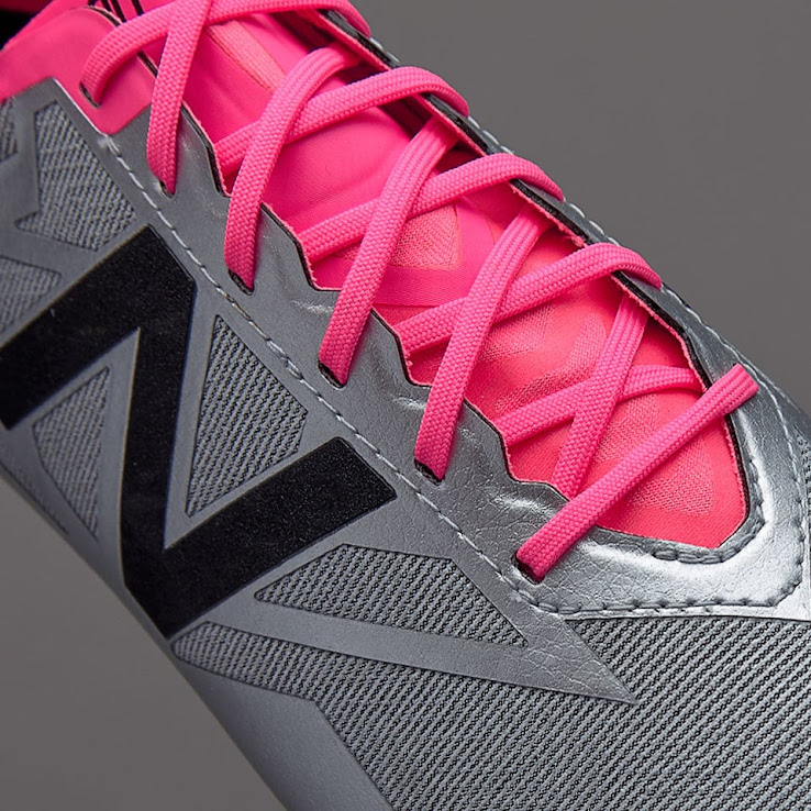 Die New Balance Furon 3.0 Flare Fußballschuhe, die ein silber / schwarz / pinkes Farbschema mit einem auffälligen, kontrastiereden N-Logo aus TPU aufweisen, wurden für jene entworfen, die auf dem Platz herausragen wollen. Die Schuhe haben ein farbwechselndes Obermaterial.
