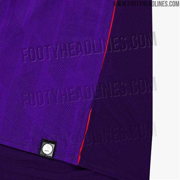 Das Liverpool 2018-2019 Trikot, das größtenteils lila ("Deep Violet") ist, paart diese unauffällige Grundfarbe mit dunkleren lila Ärmeln und hellen orangen Details, sowohl in Form von Details auf den Schultern als auch allen Logos, zu denen ein einfarbiges Vereinswappen auf der linken Brust zählt.