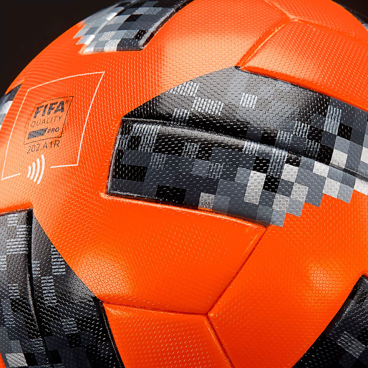 Der Adidas Telstar 18 Winter-Fußball, der für schneeige Bedingungen entworfen wurde, ist in einem auffälligen Orange mit einfarbig schwarzen Logos gehalten. Genauso wie der weiße Adidas Telstar 18 Ball zeichnet sich die Winteredition durch die typische verpixelte Grafik aus, die von den ländlichen Gebieten Russlands inspiriert wurde.