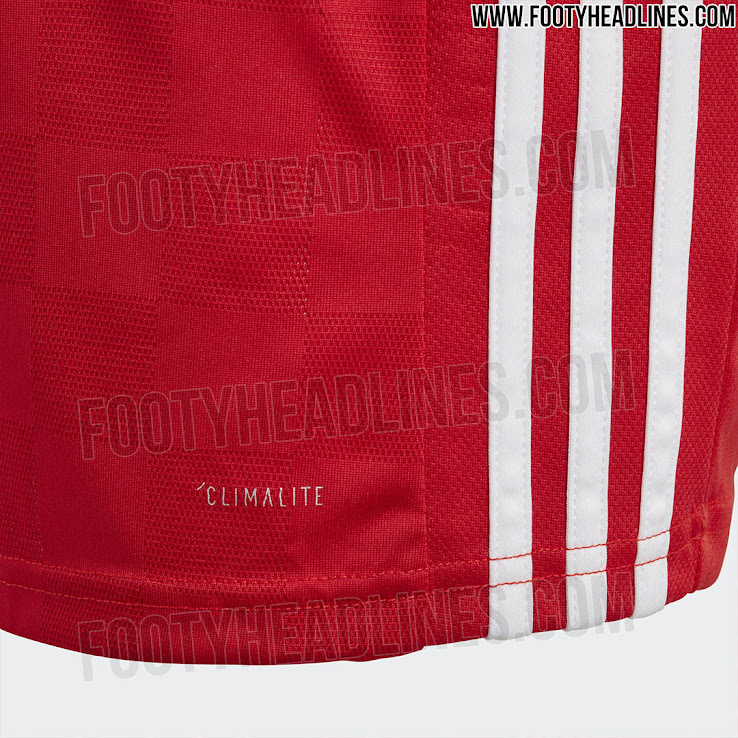 Das Ägypten 2018 Trikot, das hauptsächlich rot ist, führt ein maßgeschneidertes Design mit einem subtilen, sublimierten Karomuster auf der Vorderseite und weißen Adidas-Streifen entlang der Seiten ein. Der Kragen und die Ärmelenden des Ägypten 2018 Trikots sind schwarz.