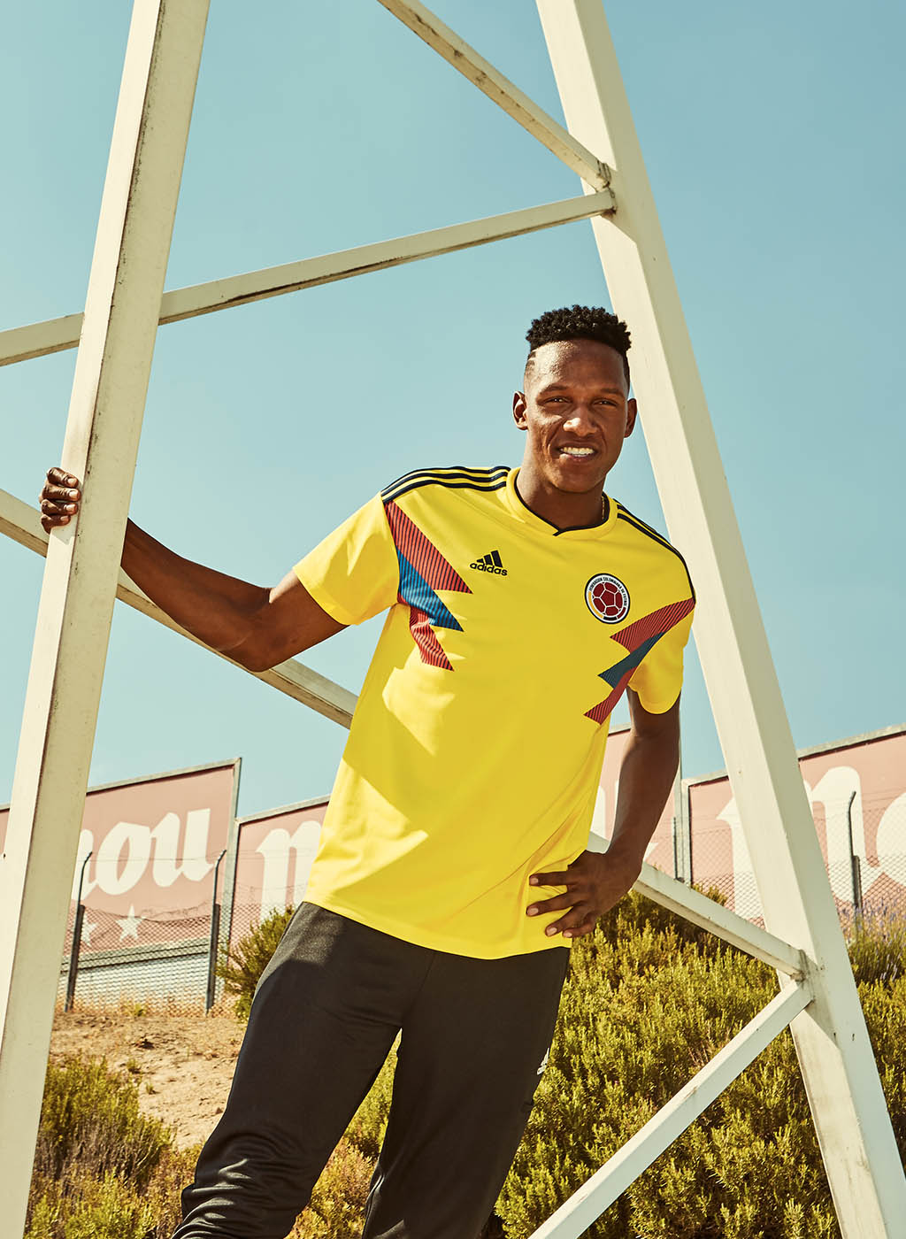 Kolumbiens neues 2018-Heimtrikot wurde eng von ihrem kultigen WM 1990 Trikot inspiriert, das ähnlich auffällige Farben und das berühmt-berüchtigte Grafikmuster des Kolumbien 1990 Trikots aufweist.