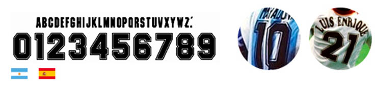 Argentiniens und Spaniens WM 1994 Schriftart waren anders als die Schriftart, die andere Adidas-Länder verwendeten.