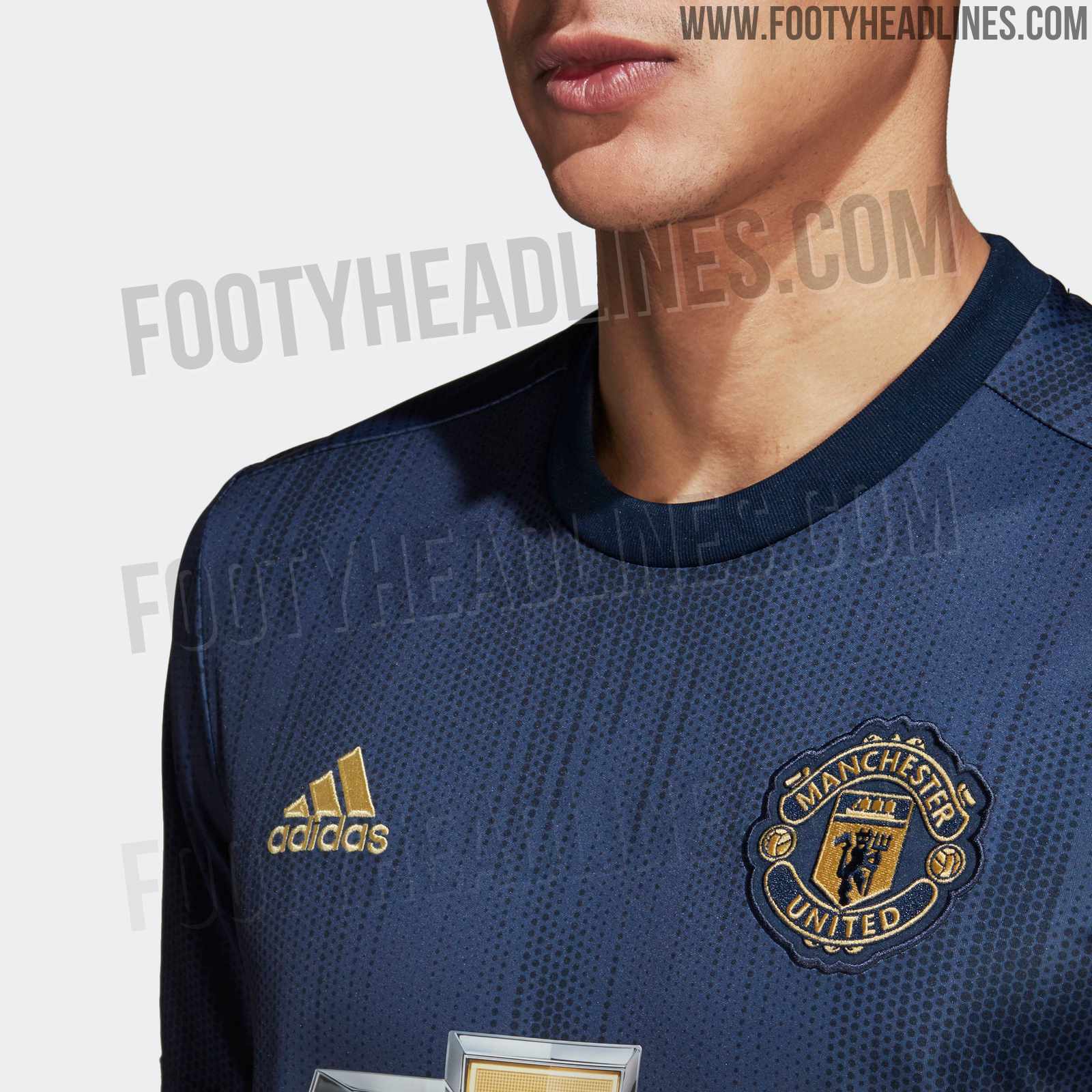 Das neue Manchester United 18-19 Trikot ist dunkelblau und golden.