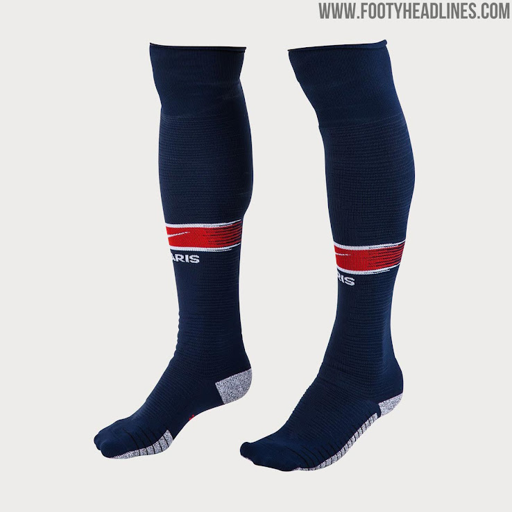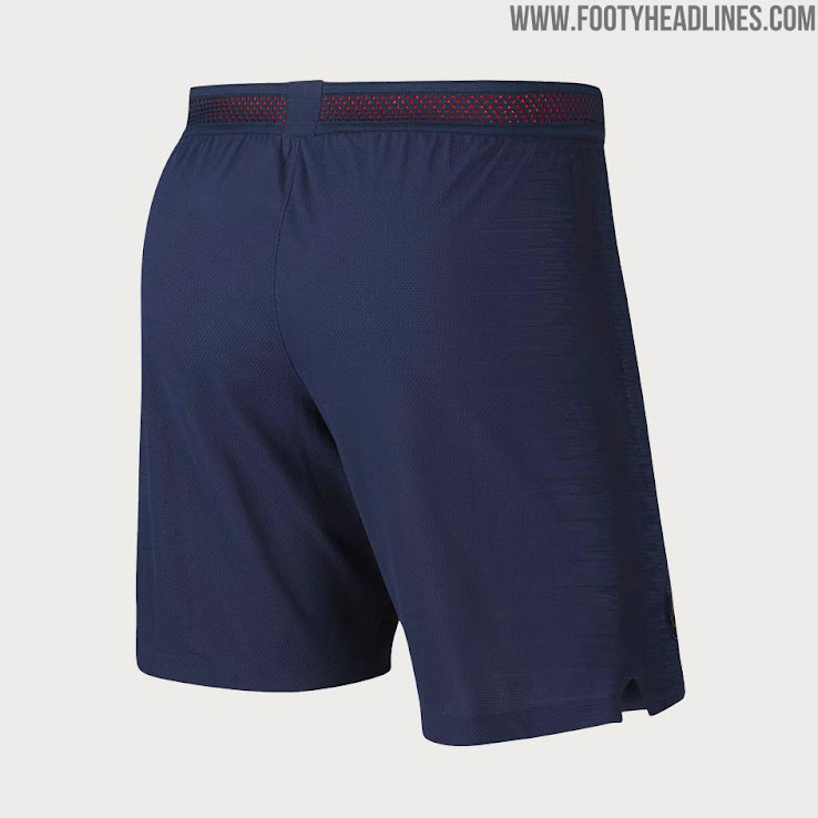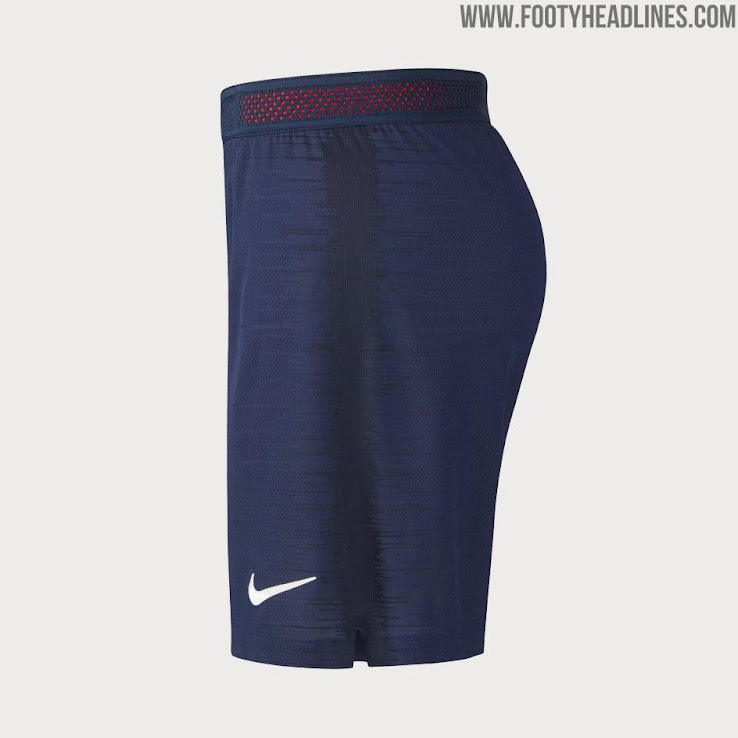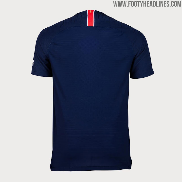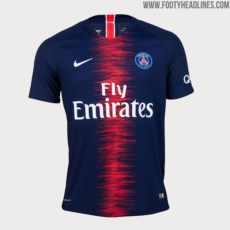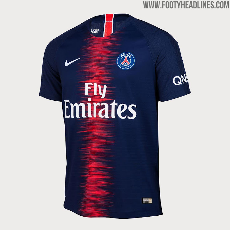 Das Paris Saint-Germain 2018-19 Trikot, das den klassischen Hechter-Stil mit Nike Footballs Designsprache 2018 kombiniert, ist hauptsächlich dunkelblau mit einem breiten roten Zickzackstreifen, der im Zentrum verläuft. Es besteht aus vielen kleineren Linien und spiegelt Designelemente des neuen Nike Vapor Aeroswift 2018 Templates wider.