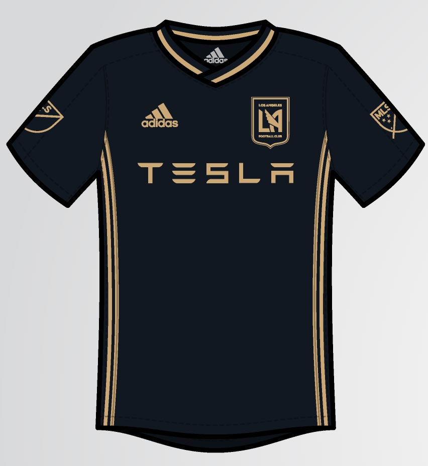 Die Vorderseite des LAFC-Konzepttrikots setzt auf das Logo von Tesla. Es ist nicht bekannt, welche Marke LAFCs allererste MLS-Trikots sponsern wird.