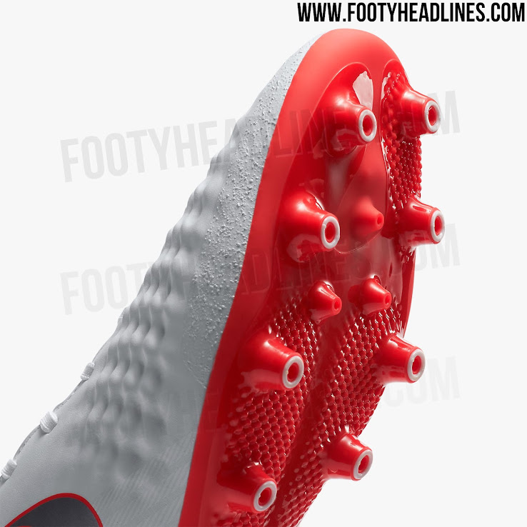 Der Nike Magista Obra II, der genauso wie der Rest der Nike WM 2018 Fußballschuh-Kollektion größtenteils weiß ist, paart dies mit silber-metallischen Swooshs und roten Teilen ("Light Crimson"). Es wird sowohl für die Umrandung des Swoosh als auch die Außensohle verwendet, wobei die Farbe im letzteren Fall mit einem auffälligen, schillernden Effekt versehen wurde, um es abzurunden.