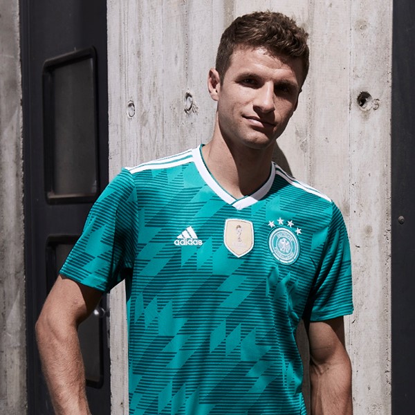 Das Deutschland WM 2018 Trikot, das erste grüne Deutschland-Auswärtstrikot seit der EM 2012, wurde von den frühen 1990ern und dem 1994-Auswärtstrikot mit seinem bläulichen Grünton inspiriert, der offiziell "EQT Green" heißt.