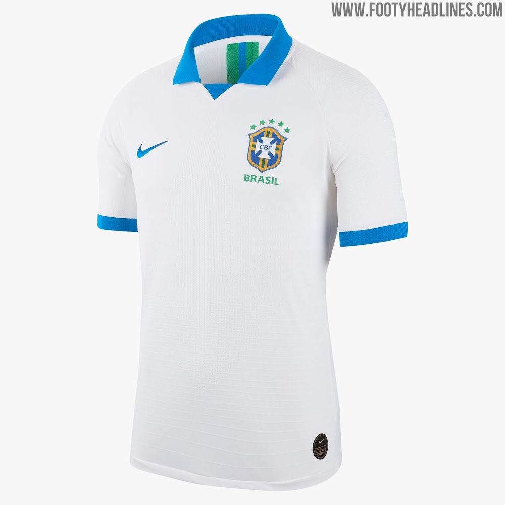 Das Nike Brasilien 2019 Trikot, ein spezielles Trikot zur Feier des 100-jährigen Jubiläums des Copa-America-Titels von 1919, kombiniert die Hauptfarbe Weiß mit blauen Applikationen, so wie das Trikot, das die Nationalmannschaft bis zur letzten Niederlage im WM-Finale 1950 trug.