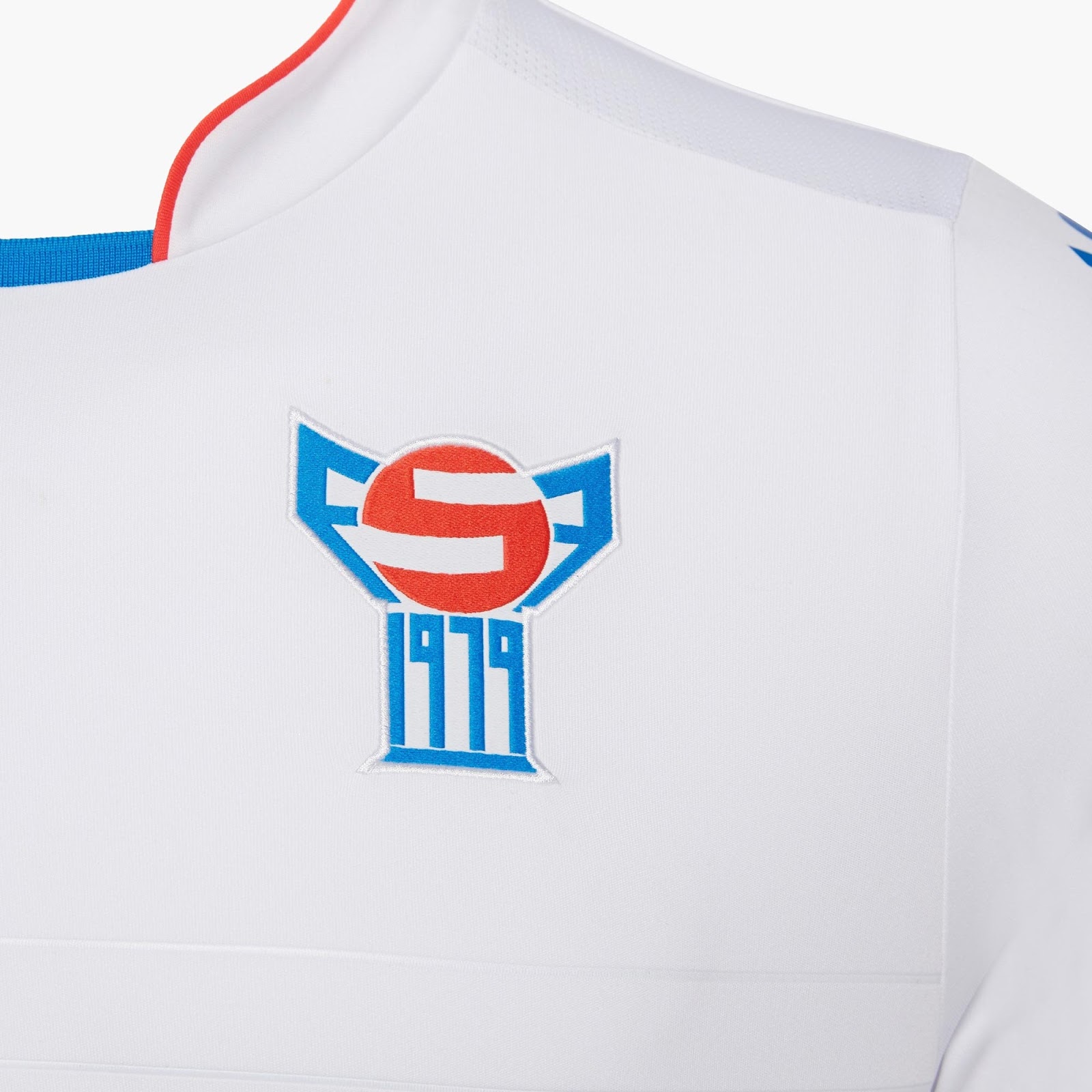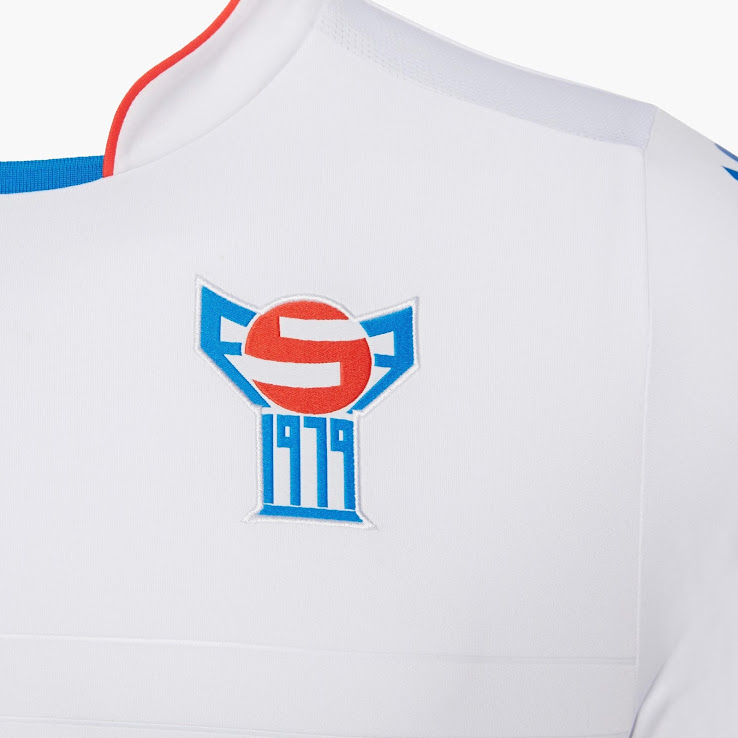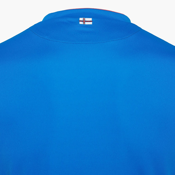 Das neue Macron Färöer Heimtrikot ist hauptsächlich weiß mit roten und blauen Details. Dieses Trikot hat eine Vielzahl von Details, die die Identität und Historie der Inseln feiern: die Vorderseite weist das individuelle Kreuz der Nationalflagge auf, während die Rückseite auf der unteren rechten eine Nachbildung der Inselgruppe aufweist. Ein weiteres Detail ist die charakteristische Rückseite des Kragens mit dem Wort "Føroyar", der Landesflagge und dem Emblem des Teams.