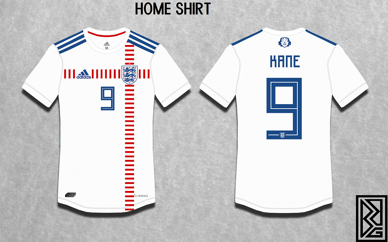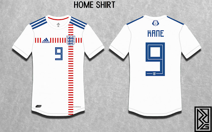 Das England-Heimtrikot ist weiß mit blauen Details und roten Streifen, was an das England 2001-03 Trikot erinnert. Das Auswärtstrikot ist natürlich rot mit dem gleichen Design.