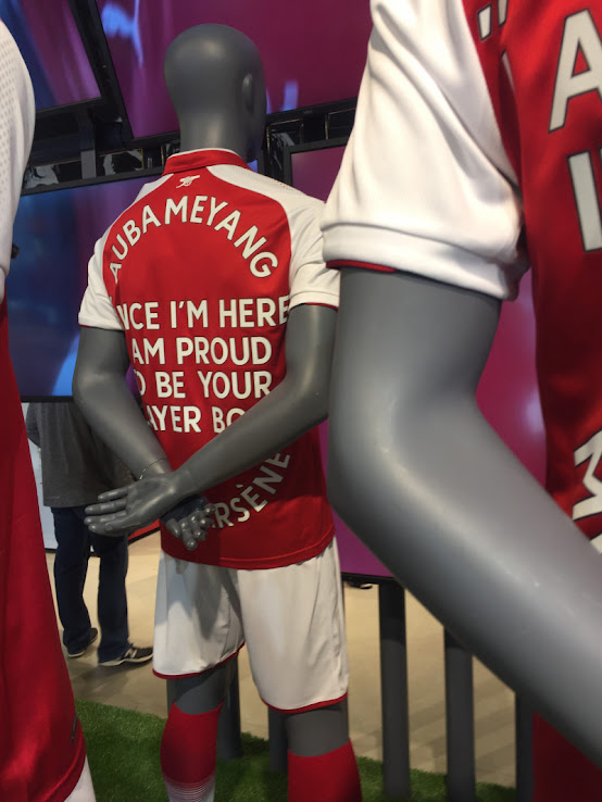 Die zu sehenden Trikots beim The Armoury weisen eine persönliche Botschaft jedes Spielers auf, die die Arsenal-Legende Arsène Wenger ehren. Jedes Trikot setzt auf den Schriftzug "Merci Arsène" unterhalb der persönlichen Botschaft.