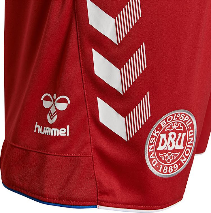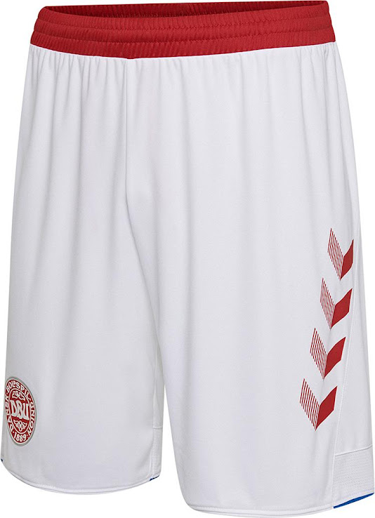Rote Hosen und weiße Stutzen komplettieren das Dänemark WM 2018 Trikot.
