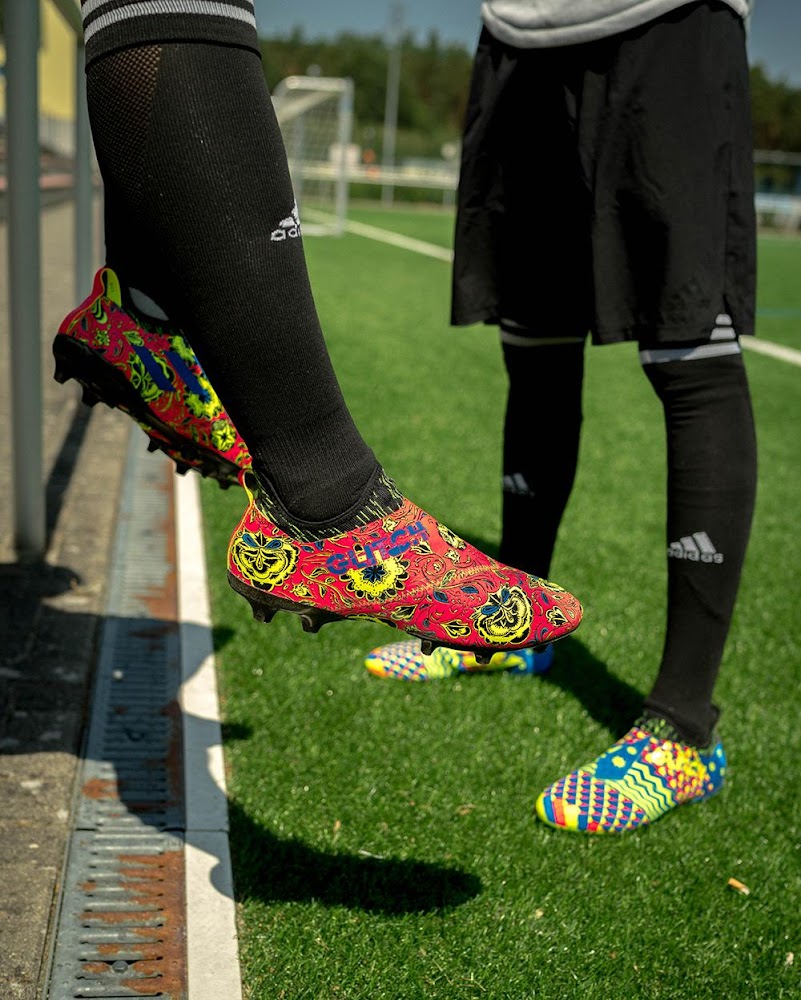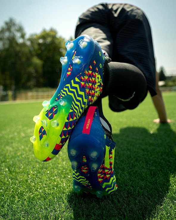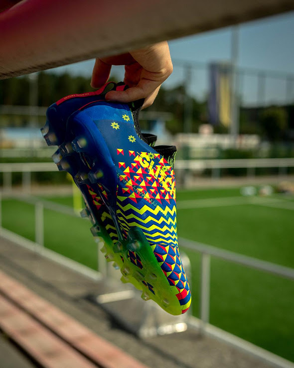 Die russischen Adidas Glitch Skins, die zuletzt von Paulo Dybala und Benjamin Mendy getragen wurden, kombinieren die auffälligsten Farben mit traditionellen russischen Kunsttechniken. Die rote Farbvariante wurde von der Chochloma-Malerei inspiriert, einem traditionellen russischen Kunsthandwerk, während die blaue Farbvarianten in Anlehnung an die kultige Basilius-Kathedrale in Moskau entstanden ist.