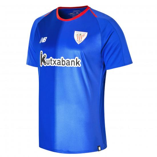 Das neue Athletic-Club-Auswärtstrikot weist ein geteiltes Design in zwei Blautönen auf, mit weißen und roten Akzenten. Rot wird für den gesamten Kragen als auch zwei Streifen daneben verwendet, während das NB-Logo auf der Brust weiß ist.
