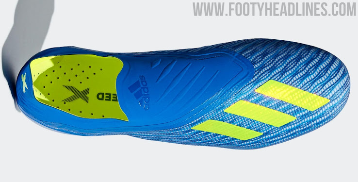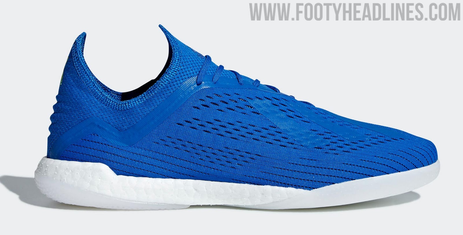 Der schnürsenkellose Adidas X 18+ Fußballschuh ist auch als Hallen- und Hartplatzversion für Kleinfeldfußball erhältlich. Das Design der Schuhe ist eine Mischung der schnürsenkellosen und Schnürsenkelversion der Reihe.
