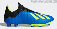 Adidas bietet ebenfalls eine modische, völlig blaue Lifestyle- / Turnschuhversion des Adidas X 18.1 Fußballschuhs an.