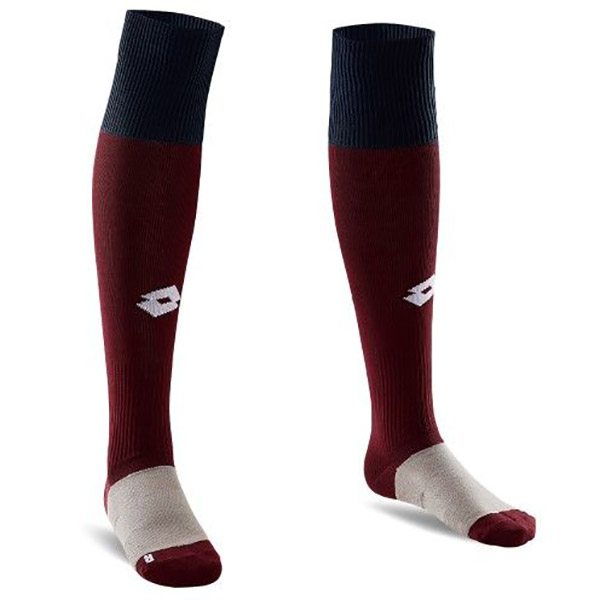 Weinrote Hosen und Stutzen komplettieren das neue Genua CFC 18-19 Trikot von Lotto.